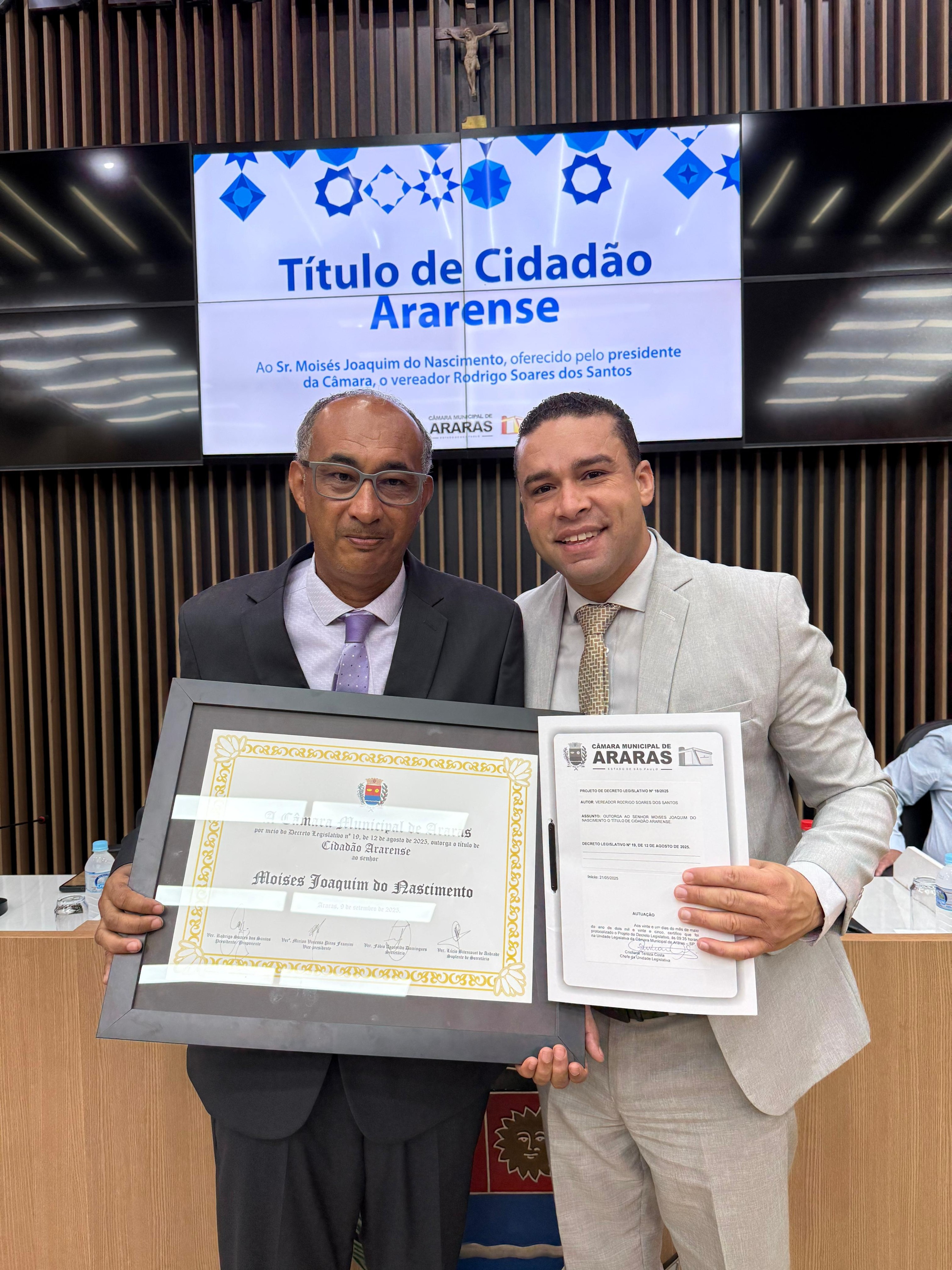 23/09/2025 Sessão Solene de entrega de Título de Cidadão Ararense ao Sr. Moisés Joaquim do Nascimento