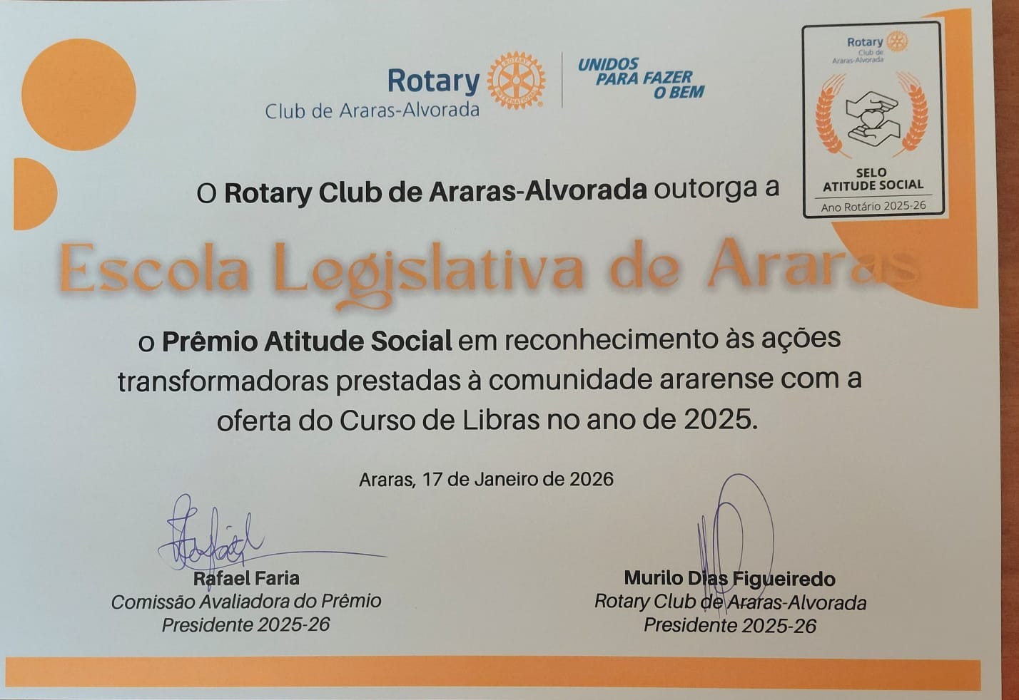 17/01/2026 Prêmio Rotary Escola Legislativa